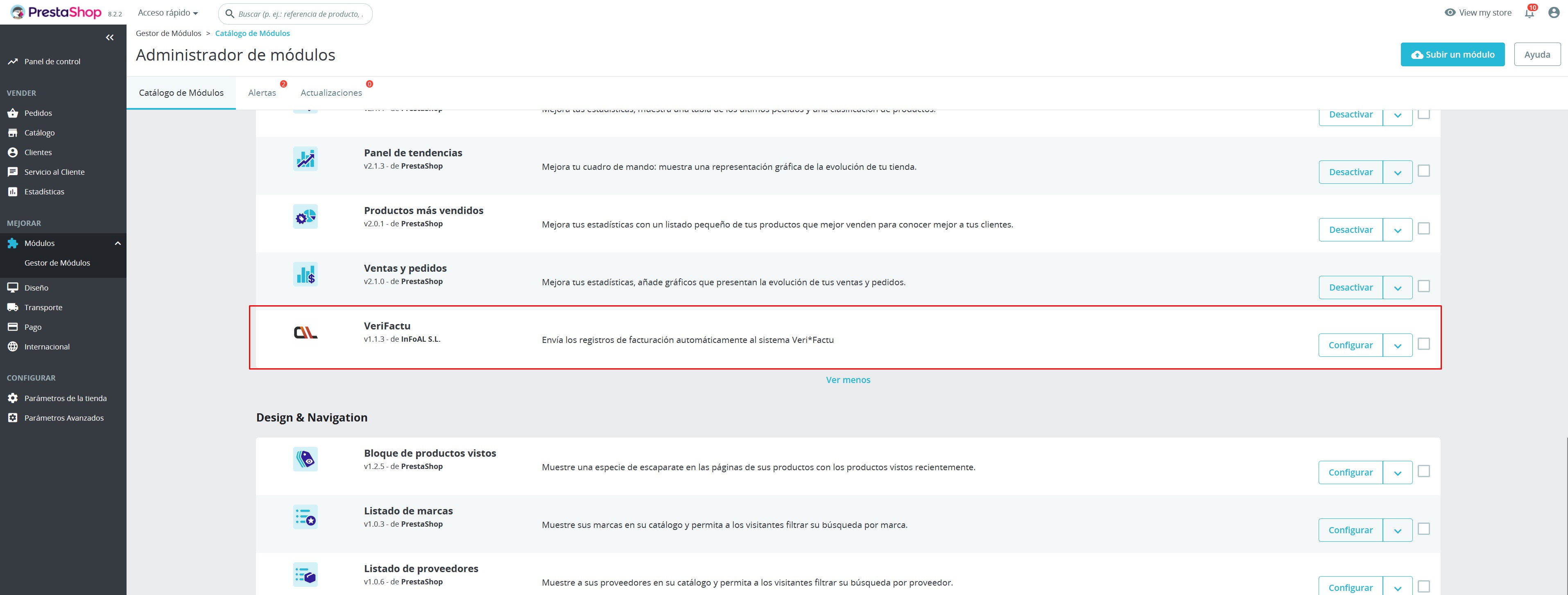 La programación del Addon se ha realizado siendo lo menos invasivos posible con el funcionamiento estandard de prestashop. Simplemente añadimos el código QR a las facturas, y te mostramos su estado en el BackEnd. Desde el propio Prestashop podrás corregir los errores y nuestro sistema transmitirá los registros de modificación o anulación a la AEAT.